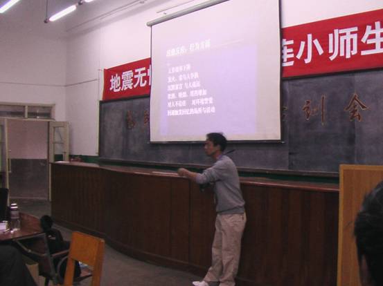 應(yīng)安寧連然小學(xué)的邀請,昆明市心理危機(jī)研究與干預(yù)中心的專家,副主任醫(yī)師唐巖于2008年6月16日下午16:00在學(xué)校階梯教室對125名教職工進(jìn)行了危機(jī)干預(yù)知識(shí)的相關(guān)培訓(xùn),分析了異地求學(xué)的災(zāi)后兒童的心理狀況,介紹了老師比較適用的肌肉松弛療法,接觸災(zāi)后兒童的方式方法,作為老師如何應(yīng)對替代性創(chuàng)傷等,講課內(nèi)容豐富生動(dòng),循循善誘,贏得了一陣陣熱烈的掌聲。有的老師稱:“災(zāi)區(qū)的孩子來了,我們可以說是即喜又憂,喜的是可以為汶川地震盡一份力,憂的是不知道孩子的心理狀況,該怎樣教育,有了這次的培訓(xùn),就像有了一盞指路燈,有了方向,也有了基本方法”。有的老師稱:“孩子就是想家,想父母,怎么辦?”,唐巖主任說:“其實(shí)孩子地震后想家是由于安全感和歸屬感的大幅降低,在適當(dāng)?shù)臅r(shí)候可以給孩子與家人通話,寫信,并反復(fù)向其保證安全,盡量取得孩子的信任感,鼓勵(lì)孩子說出內(nèi)心的想法,老師便可因材施教”。