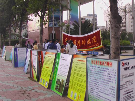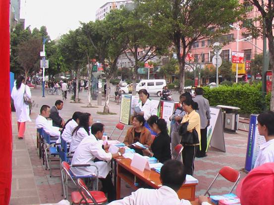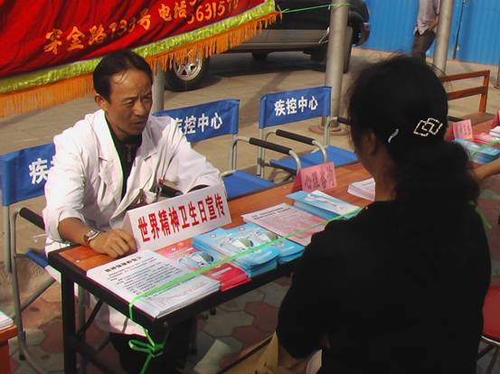 來自云南省精神衛(wèi)生中心和昆明市心理危機(jī)研究與干預(yù)中心的9位醫(yī)護(hù)人員參加了此次活動。在省精神衛(wèi)生中心醫(yī)教科主任余發(fā)春,昆明市心理危機(jī)研究與干預(yù)中心現(xiàn)場干預(yù)專家唐巖主任的帶領(lǐng)下,心身疾病科主任楊蜀云、康復(fù)科主任張勇輝、護(hù)士長張寶洪、主管護(hù)師王珊、醫(yī)教科熊昆武、危機(jī)干預(yù)中心心理熱線部劉迎霞、沈紅梅等對片區(qū)居民進(jìn)行了心理衛(wèi)生知識、精神疾病防治、精神病人的管理及康復(fù)等作了圖片展板宣傳,并對社會各界人士的咨詢問題作了專業(yè)現(xiàn)場解答、贈送宣傳資料、免費(fèi)測量血壓。