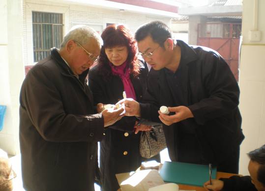 根據(jù)昆明市重性精神疾病防制試點方案,矣六鄉(xiāng)共有10名家庭貧困的免費服藥患者,在2009年11月份以來開始免費服藥,中心專家每月都到矣六鄉(xiāng)給患者提供免費服藥。中心專家詳細詢問患者在服藥期間的病情變化,并根據(jù)患者的病情適當(dāng)調(diào)整藥物,向患者和家屬交待了服藥的注意事項。根據(jù)防制試點方案,官渡區(qū)醫(yī)院對10名患者進行免費化驗,包括心電圖、血常規(guī)、血生化等項目。官渡區(qū)共有50名的精神病患者納入隨訪管理,中心專家與官渡區(qū)疾控中心工作人員對該項工作進行了督導(dǎo)檢查。