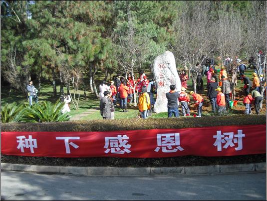 我們和孩子們在昆明世博園揮鍬種下了100多棵玉蘭樹,寄托著孩子們對云南第二故鄉(xiāng)的眷戀之情,記載著四川災區(qū)的學生在云南學習生活近八個月美好時光。這些樹木將與即將返川的孩子一同成長。