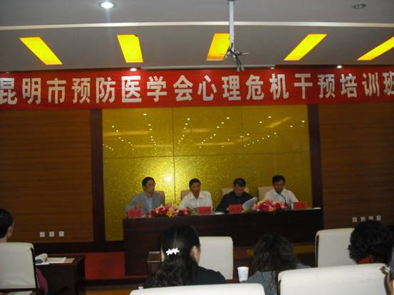 15日上午9點(diǎn)在兵器療養(yǎng)院9號(hào)會(huì)議廳舉行了開幕式,由市疾病預(yù)防控制中心副主任邱俊主持,昆明市衛(wèi)生局疾病預(yù)防控制處處長(zhǎng)、昆明市預(yù)防醫(yī)學(xué)會(huì)副會(huì)長(zhǎng)楊韜代表市衛(wèi)生局出席開幕式,并講話,楊處長(zhǎng)講述了在當(dāng)前各種危機(jī)事件和社會(huì)應(yīng)激事件多發(fā)的形勢(shì)下舉辦這個(gè)危機(jī)干預(yù)培訓(xùn)班的重要性和必要性,并希望通過(guò)對(duì)從事疾病預(yù)防控制工作的人員進(jìn)行危機(jī)干預(yù)知識(shí)的專業(yè)培訓(xùn),在以后的工作中,能夠識(shí)別危機(jī)引發(fā)的心理影響,將危機(jī)干預(yù)技術(shù)應(yīng)用到工作中,更好的幫助群眾,從心理健康上做到預(yù)防保健。云南省精神衛(wèi)生中心副院長(zhǎng)蔣陸友、昆明市心理危機(jī)研究與干預(yù)中心執(zhí)行主任阮冶在主席臺(tái)上就座并講話,預(yù)祝會(huì)議圓滿成功。此次培訓(xùn)班教師全部來(lái)自于云南省精神衛(wèi)生中心,昆明市心理危機(jī)研究與干預(yù)中心的心理危機(jī)干預(yù)專家,他們的授課內(nèi)容如下: