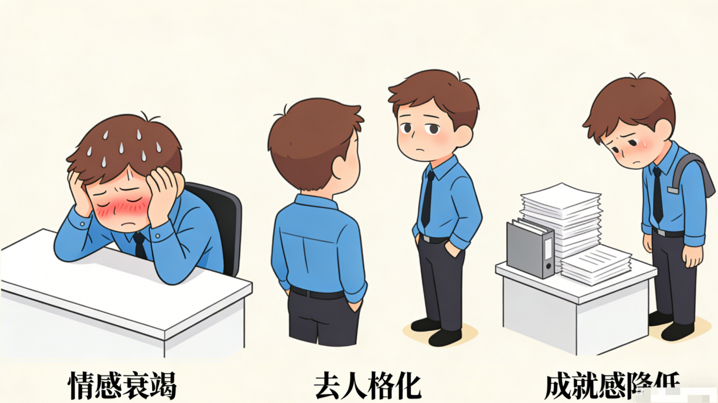 職業(yè)倦怠是一種由長(zhǎng)期工作壓力導(dǎo)致的心理綜合癥,通常表現(xiàn)為: