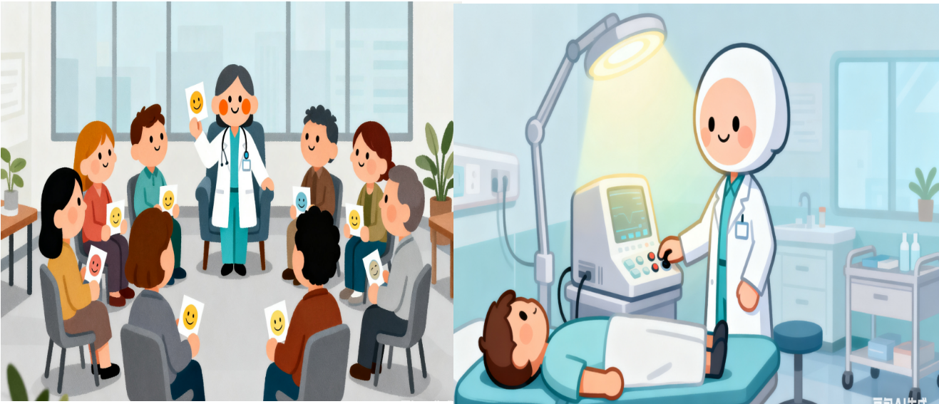 物理治療:改良電休克治療(MECT): 這是目前非常安全、高效的治療方法,尤其對于嚴(yán)重抑郁、自殺風(fēng)險(xiǎn)高、拒食拒藥的患者效果顯著。治療會在全麻下進(jìn)行,患者毫無痛苦,就像睡了一覺。它能快速緩解嚴(yán)重癥狀,為后續(xù)治療贏得時(shí)間。它和影視作品中可怕的“電擊”場景完全不是一回事。