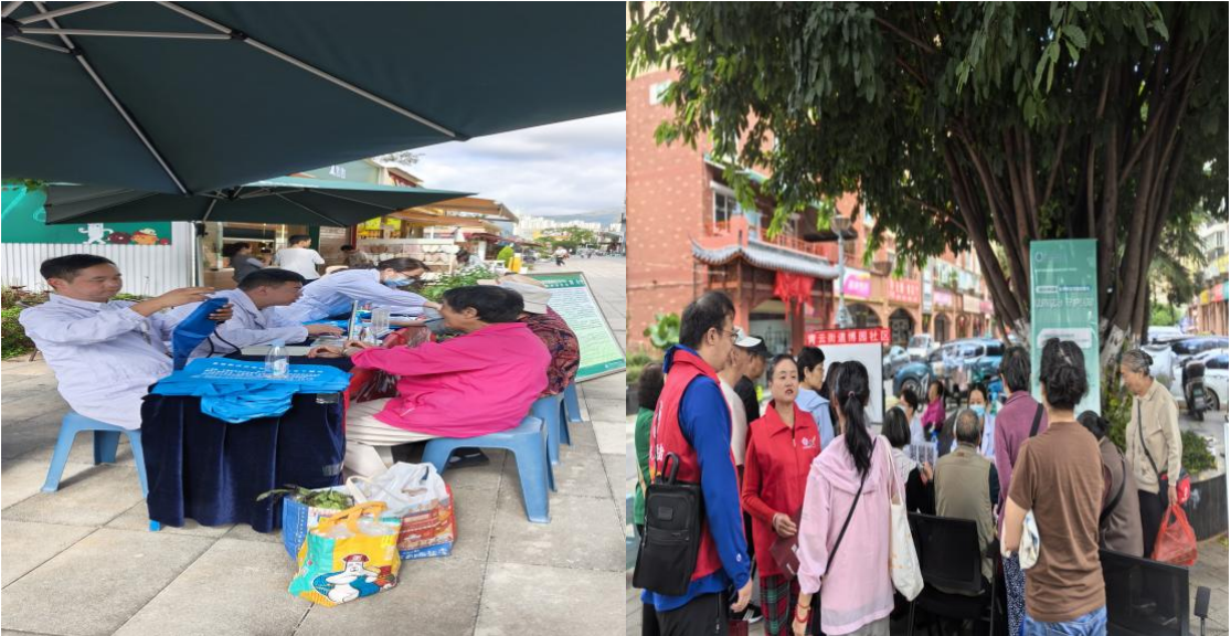 9月21日醫(yī)院老年科的專家團(tuán)隊(duì)同時(shí)在北辰映象商業(yè)區(qū)小廣場(chǎng)、印象首日封小廣場(chǎng)和金辰街道清泉社區(qū)、青云街道博園社區(qū)聯(lián)合組織了兩場(chǎng)義診活動(dòng)140名老年人及其家屬前來(lái)健康咨詢、專業(yè)指導(dǎo)、答疑解惑,現(xiàn)場(chǎng)氣氛熱烈,社區(qū)群眾不出小區(qū)就得到專業(yè)人士深入淺出的講解,獲得大家的一致好評(píng)。現(xiàn)場(chǎng)發(fā)放宣傳資料近200份。
