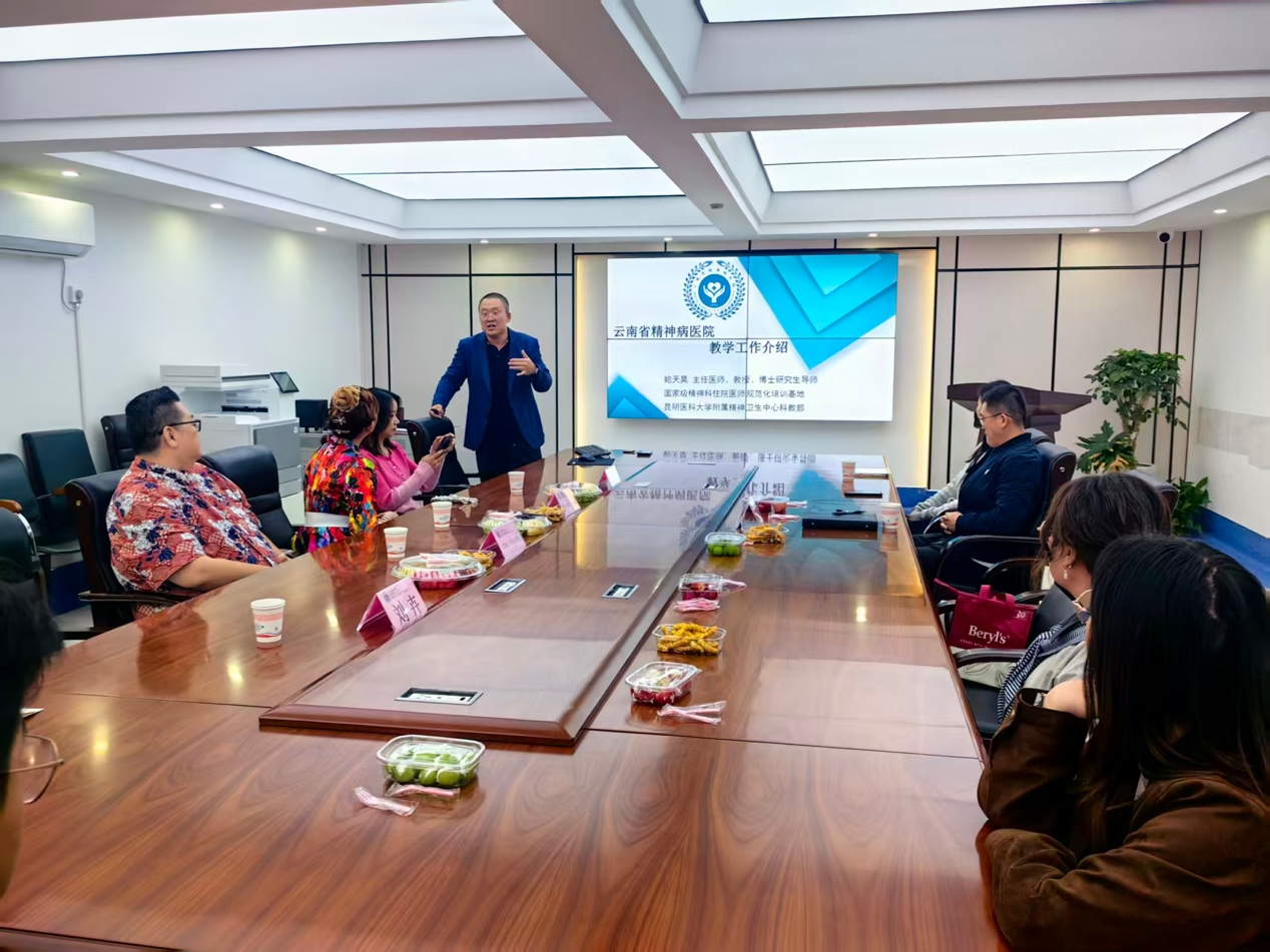 座談會(huì)上,醫(yī)院科教部主任鮑天昊教授對醫(yī)院總體情況進(jìn)行了介紹,包括醫(yī)院目前學(xué)科布局、科研平臺建設(shè)、研究團(tuán)隊(duì)現(xiàn)狀、國際合作基礎(chǔ)以及研究生和住培醫(yī)師培養(yǎng)體系等。簡要介紹了我院青少年精神衛(wèi)生特色門診和線上互聯(lián)網(wǎng)醫(yī)院的運(yùn)行模式與服務(wù)成效。隨后,Ling King Hwa 教授與 Cheah Pike See 教授介紹了馬來西亞布特拉大學(xué)的整體辦學(xué)情況、學(xué)校組織架構(gòu)以及醫(yī)學(xué)與健康科學(xué)領(lǐng)域的學(xué)科設(shè)置,并重點(diǎn)分享了其在精神衛(wèi)生研究、跨學(xué)科創(chuàng)新平臺建設(shè)及未來發(fā)展規(guī)劃等方面的戰(zhàn)略布局。