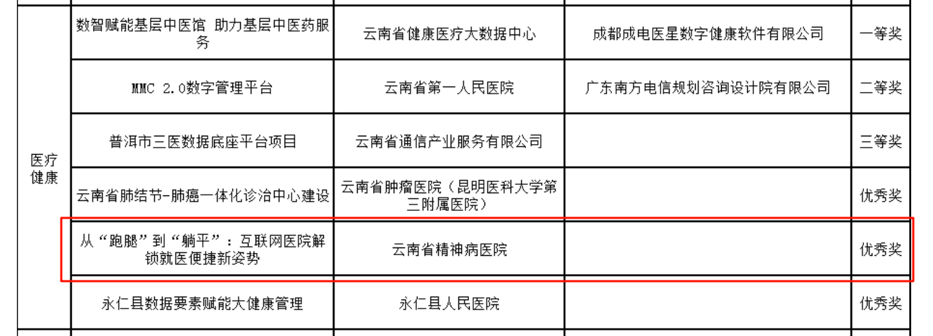 云南省精神病醫(yī)院申報的“從‘跑腿’到‘躺平’:互聯(lián)網(wǎng)醫(yī)院解鎖就醫(yī)便捷新姿勢”項目,在醫(yī)療健康領(lǐng)域“提升醫(yī)療服務(wù)便捷性”賽道中脫穎而出,榮獲“優(yōu)秀獎”。